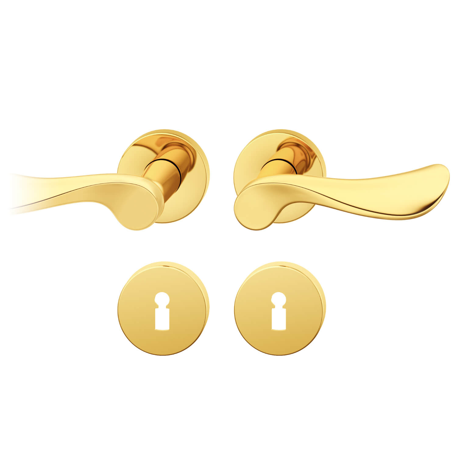 • 2 klamki z litego, nielakierowanego mosiądzu